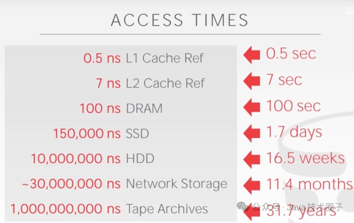 比如一个功能要读取 100G 的大数据进行计算。有些人会提出用多线程处理,有些人会说建立一个 hadoop 集群,都不如申请一个 128g 的内存条加到服务器里面。这样可以把数据直接读进内存运算。如上图的 SSD 到 DRAM,不仅比前面的方案快 1500 倍,而且更省时间,还更省钱,一条 128g 的服务器内存也才 3000 块钱,远低于其他方案的人力成本。